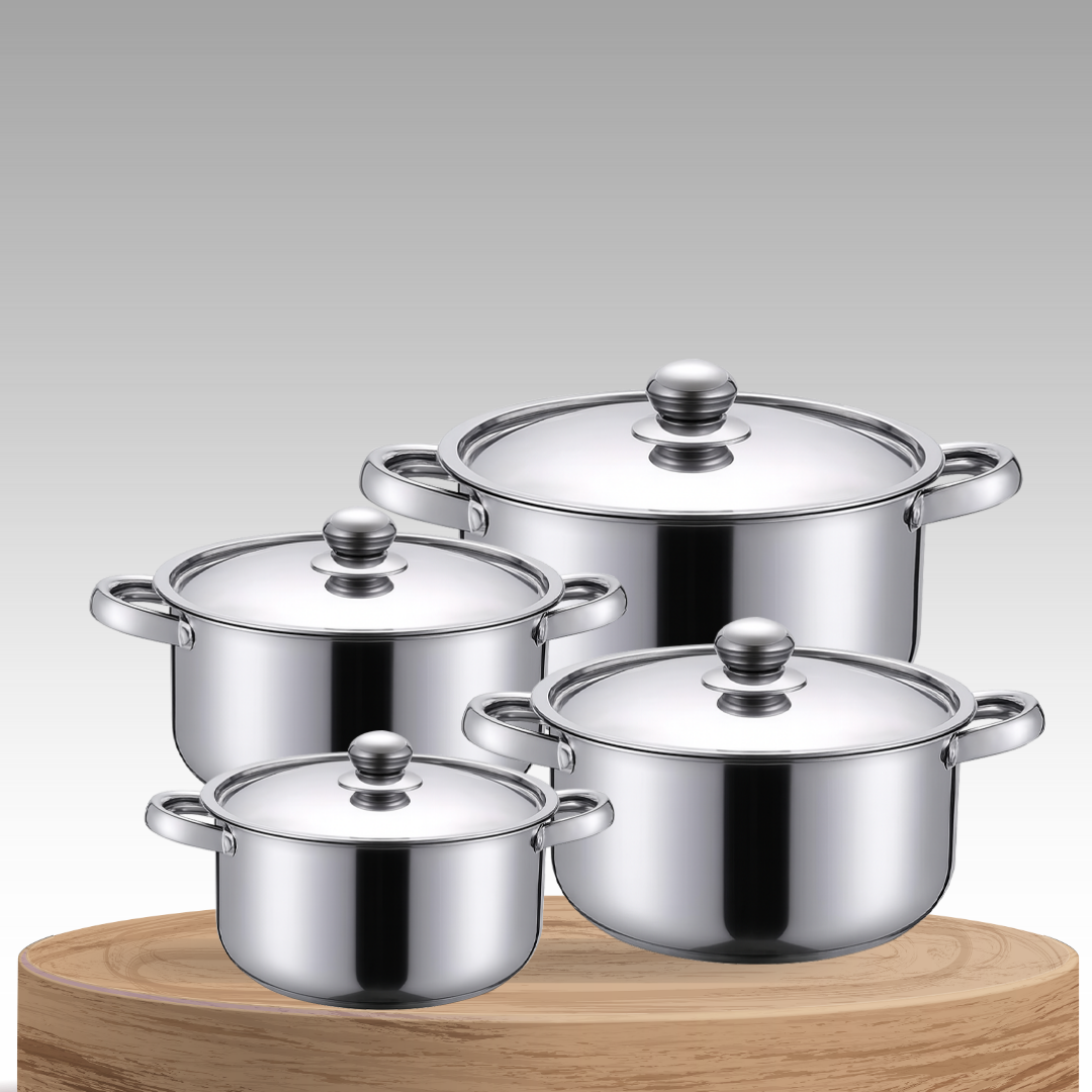 The Culina 8-Piece Stainless Steel Cookware Set brings functionality and style to your kitchen. With four pots and matching lids, it is designed for everyday meals and versatile dishes.