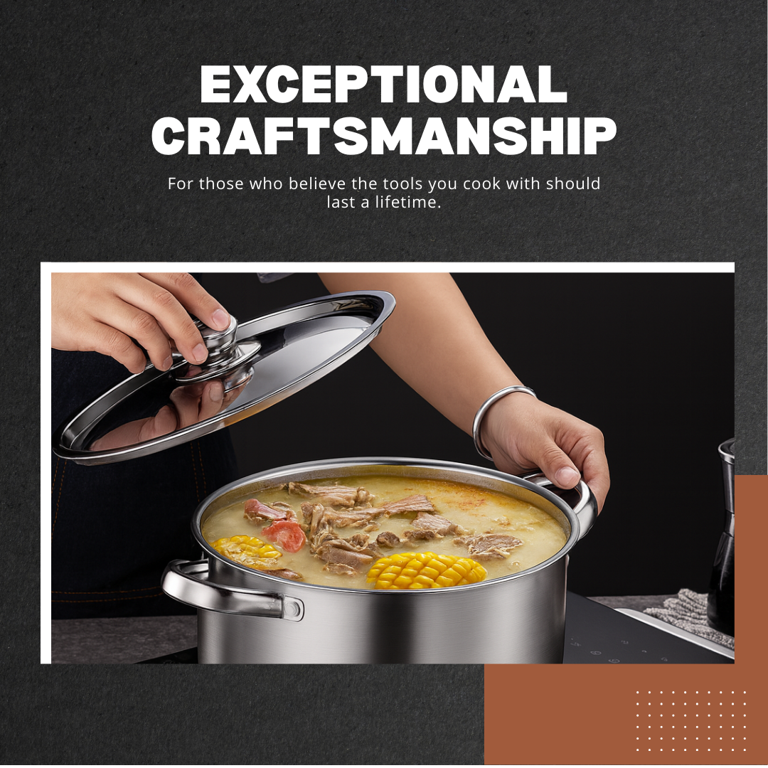 Crafted with stainless steel and a polished surface, this set ensures practical cooking performance. Suitable for various stovetops, it is ideal for soups, noodles, seafood, and family gatherings.