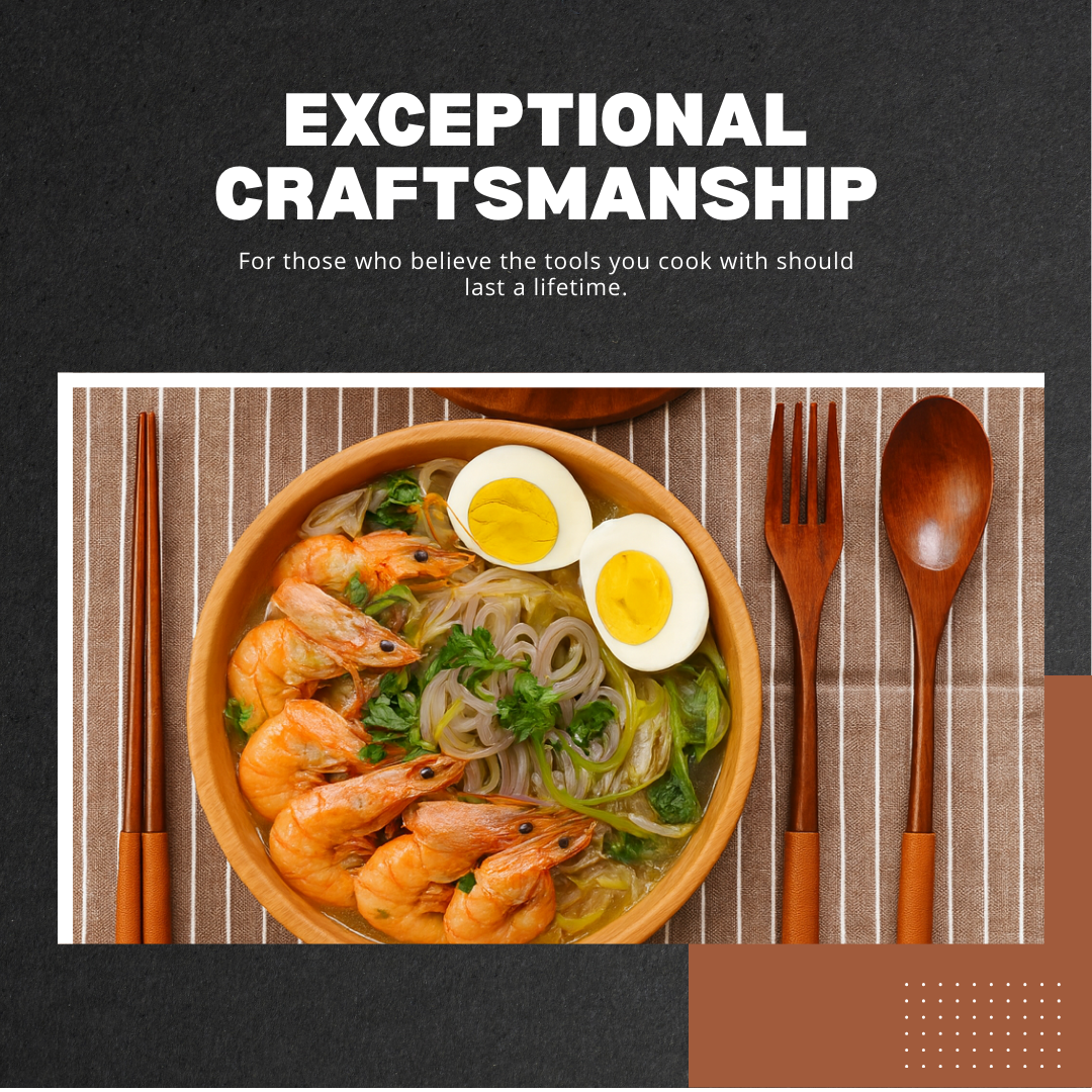 Carved from premium hardwood, our woodenware is crafted to hold its strength and balance — not just for years, but for a lifetime. No cracking. No compromise. Just lasting elegance, meal after meal.