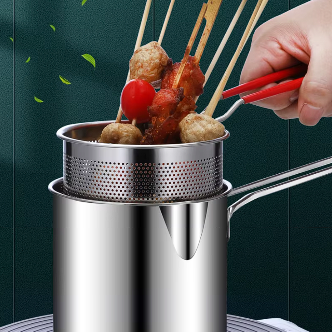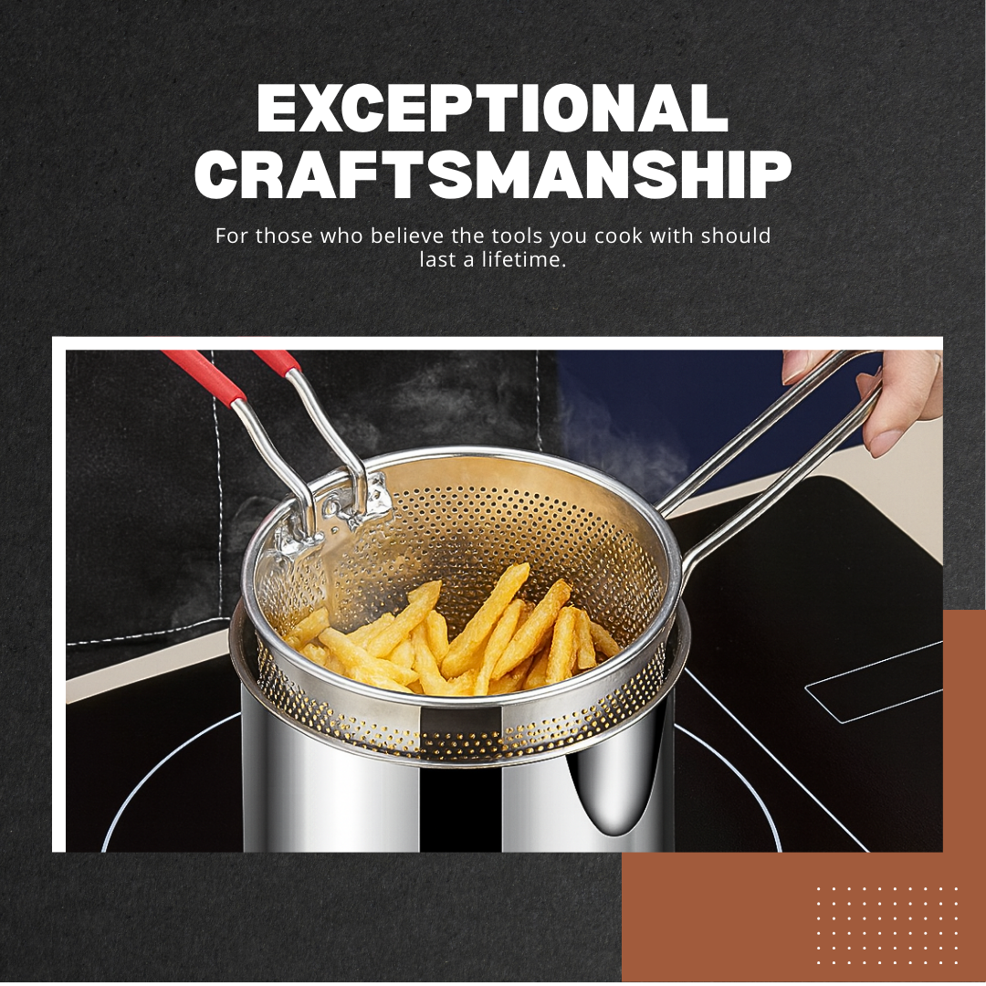 The Kitchura frying pan set is crafted from high-quality stainless steel, designed to deliver durability and efficient heat conduction. With a 1200ml capacity, these pans are perfect for preparing small meals, snacks, and side dishes such as fries, chicken wings, or vegetables with ease.