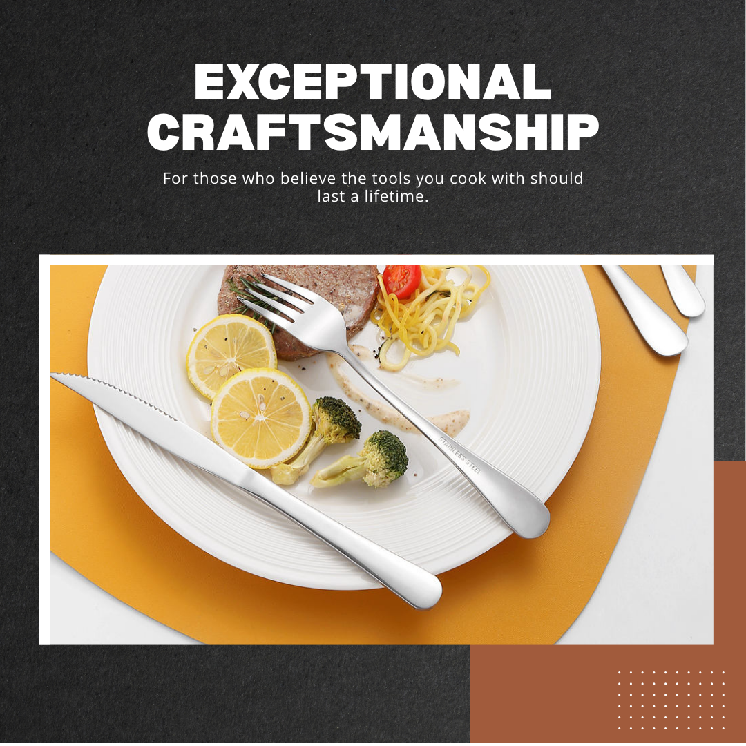 Forged from premium steel, our cutlery is crafted to hold its strength and balance — not just for years, but for a lifetime. No bending. No compromise. Just lasting elegance, meal after meal.