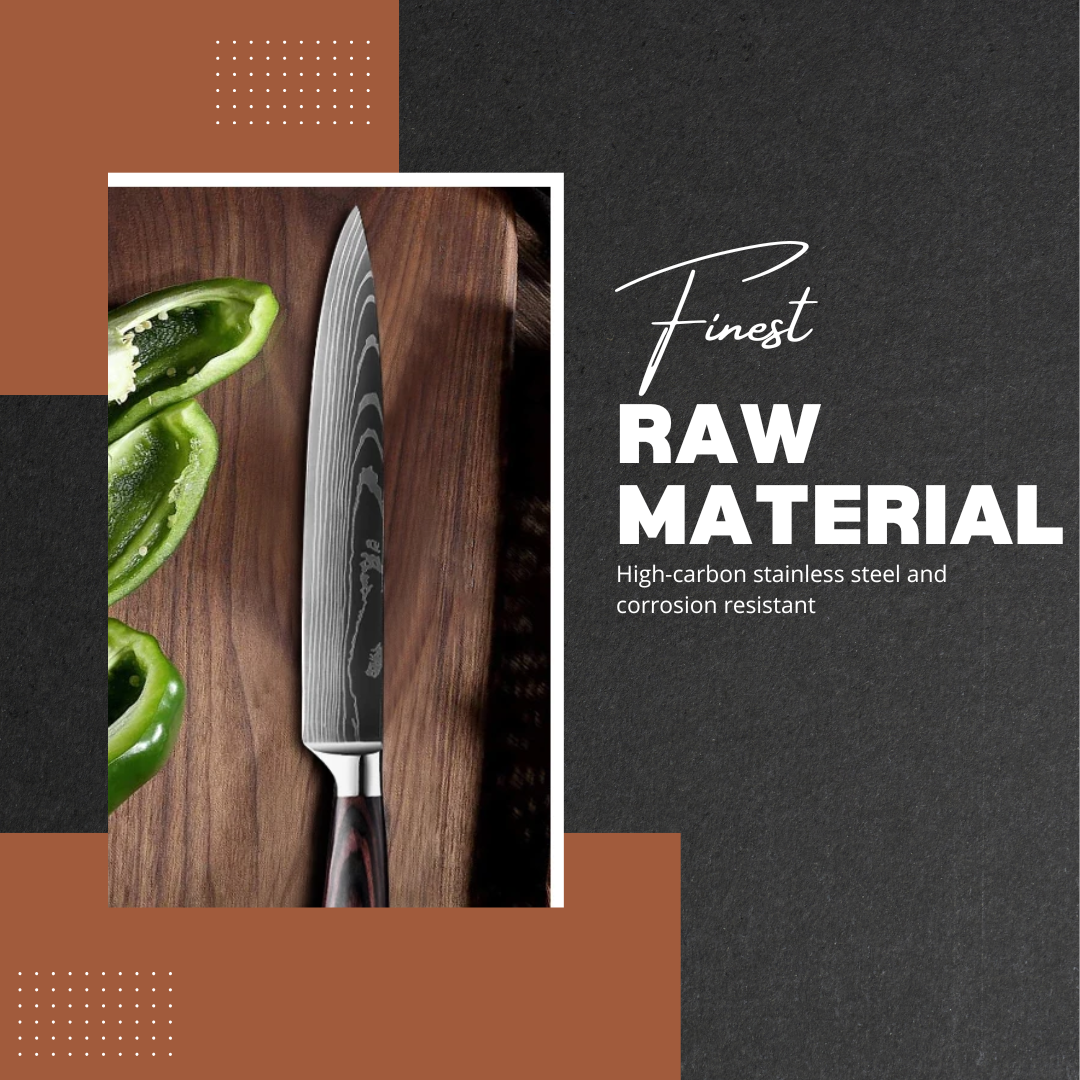 The Solvara knife set is designed to deliver professional-grade performance for any cooking style. Forged from premium German stainless steel, each blade offers superior sharpness, strength, and durability. From carving meats to slicing vegetables, this versatile set ensures flawless results in every cut.