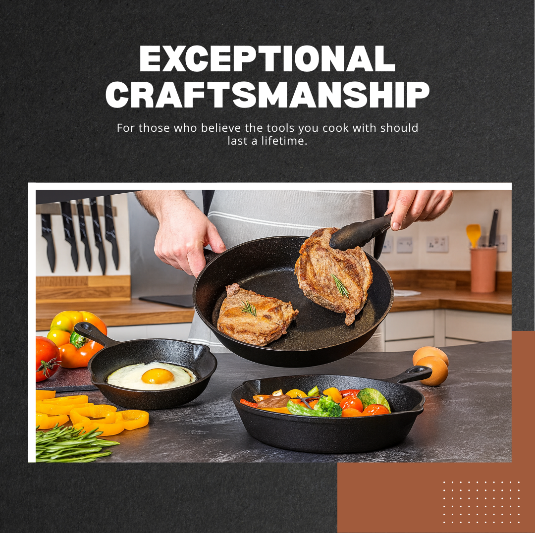 Forged from premium iron, our pans are crafted to hold their strength and heat — not just for years, but for a lifetime. No warping. No compromise. Just lasting performance, meal after meal.